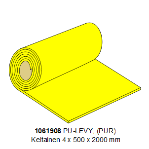 Polyuretaanilevy (PUR) erittäin hyvin mekaanista kulutusta kestävä. Soveltuu esim. alustan suojalevyksi kiveniskuja vastaan.