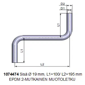 Jäähdytysjärjestelmä- ja lämmityslaitekäyttöön, moottoriajoneuvoihin, sekä työkoneisin yms. soveltuva vahvikkeellinen EPDM 2-mutkainen muotoletku. Hyvä otsonin ja vanhenemisen kestävyys.