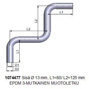 Jäähdytysjärjestelmä- ja lämmityslaitekäyttöön, moottoriajoneuvoihin, sekä työkoneisin yms. soveltuva vahvikkeellinen EPDM 3-mutkainen muotoletku. Hyvä otsonin ja vanhenemisen kestävyys.