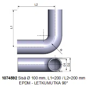 LETKUMUTKA 90°, Ø 100 x 200/200 mm, EPDM