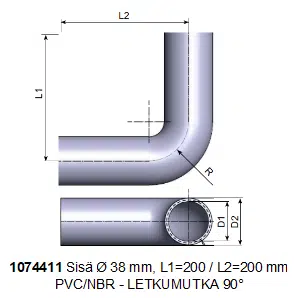 LETKUMUTKA 90°, Ø 38 x 200/200 mm