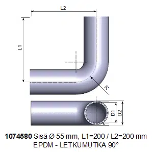LETKUMUTKA 90°, Ø 55 x 200/200 mm, EPDM