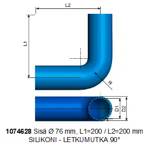 LETKUMUTKA 90°, Ø 76 x 200/200 mm SILIKO