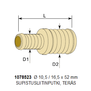 Mitat (mm): D1 10,5, D2 16,5, L 52 mm
