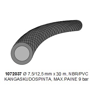 Joustava ja taipuisa kangaskudospintainen polttoaineletku joka soveltuu lyijyttömälle bensiinille / diesel polttoaineille. Sisäpinta valmistettu NBR/PVC materiaalista / ulkopinta punottua polyesteriä. Asennus letkukiristimillä.
