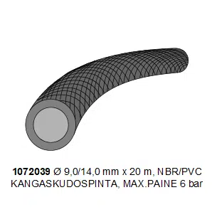 Joustava ja taipuisa kangaskudospintainen polttoaineletku joka soveltuu lyijyttömälle bensiinille / diesel polttoaineille. Sisäpinta valmistettu NBR/PVC materiaalista / ulkopinta punottua polyesteriä. Asennus letkukiristimillä.