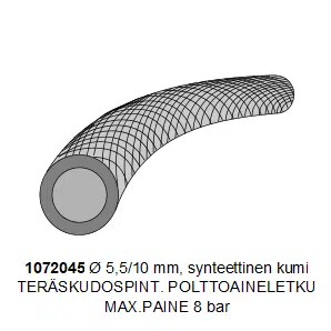 Joustava ja taipuisa teräskudospintainen polttoaineletku joka soveltuu öljypolttimien ja työkoneiden polttoaineiden järjestelmille. Valmistettu synteettisestä kumimateriaalista (elastomeeri) / ulkopinnassa sinkitty teräskudos. Asennus letkukiristimillä.