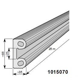 ASENNUS: Törmäyskumi asennetaan T-uran pohjasta alumiini-profiililla ja ruuveilla. Törmäyssuojan takapinnassa olevat tarrapinnat on tarkoitettu vain asentamisen helpottamiseksi. Ei tuotteen varsinaiseen kiinnittämiseen.